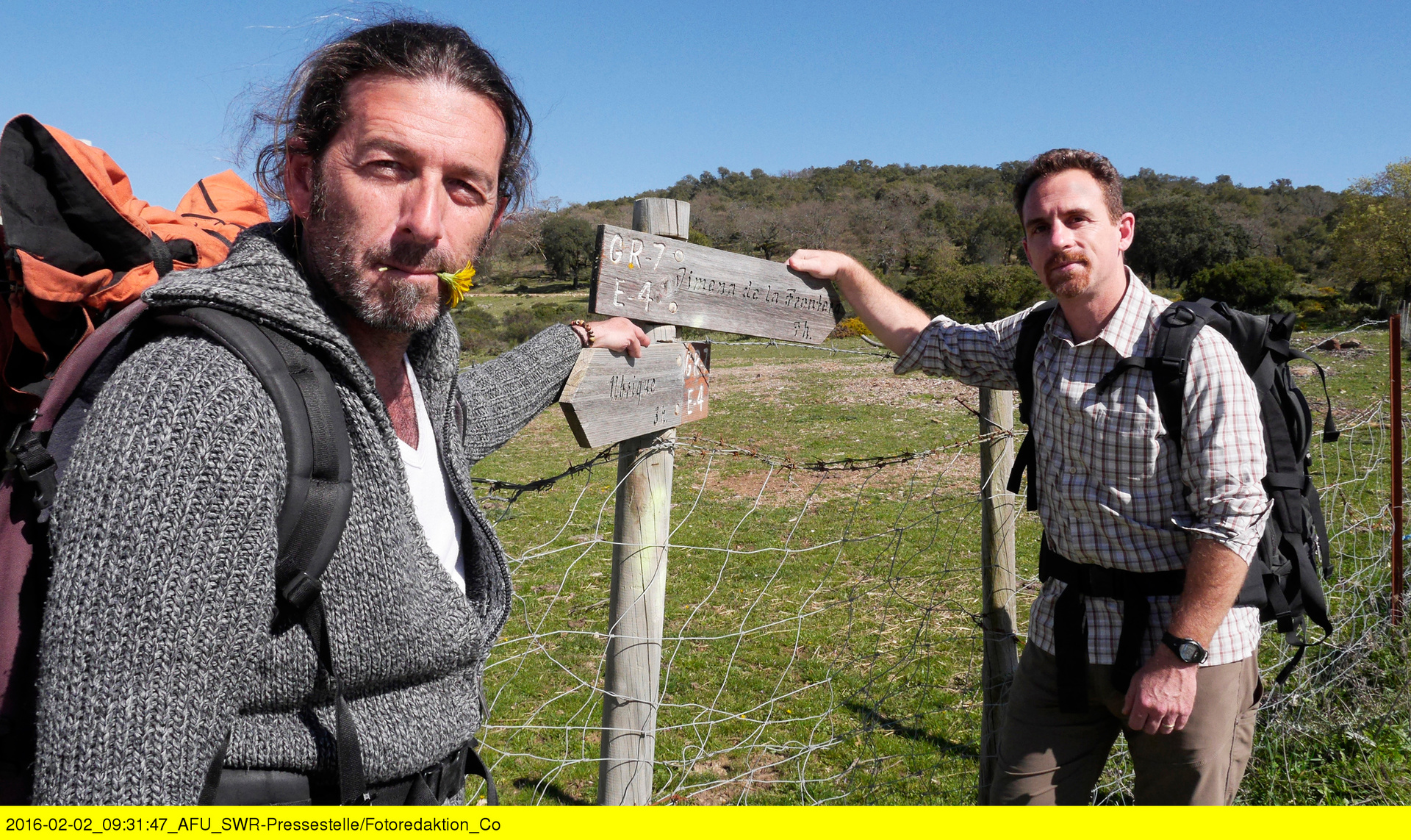 Bradley Mayhew ist mit der kretischen Wanderführerin Penelope unterwegs. Der englische Reiseführerautor Bradley Mayhew ist der Originalroute Stevensons gefolgt. Bradley Mayhew stellt in der zehnteiligen ARTE-Dokureihe Wanderlust Europas schönste Weitwanderwege vor.