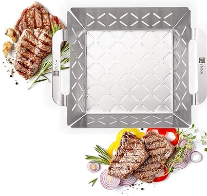 Heynna Edelstahl Grillkorb Grillzubehor Grillschale Fur Gemuse Fleisch Fisch Auf Dem Grill Oder Im Backofen Amazon De Garten