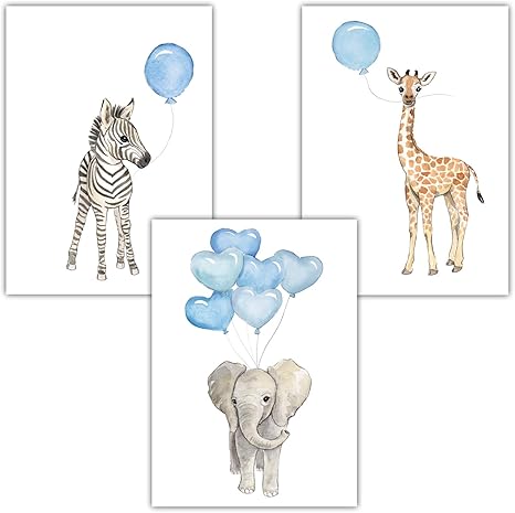 Frechdax 3er Set Kinderzimmer Wandbilder Kinderzimmer Junge Dekoration Babyzimmer Junge 3er Set Blau Elefant Giraffe Zebra Amazon De Kuche Haushalt