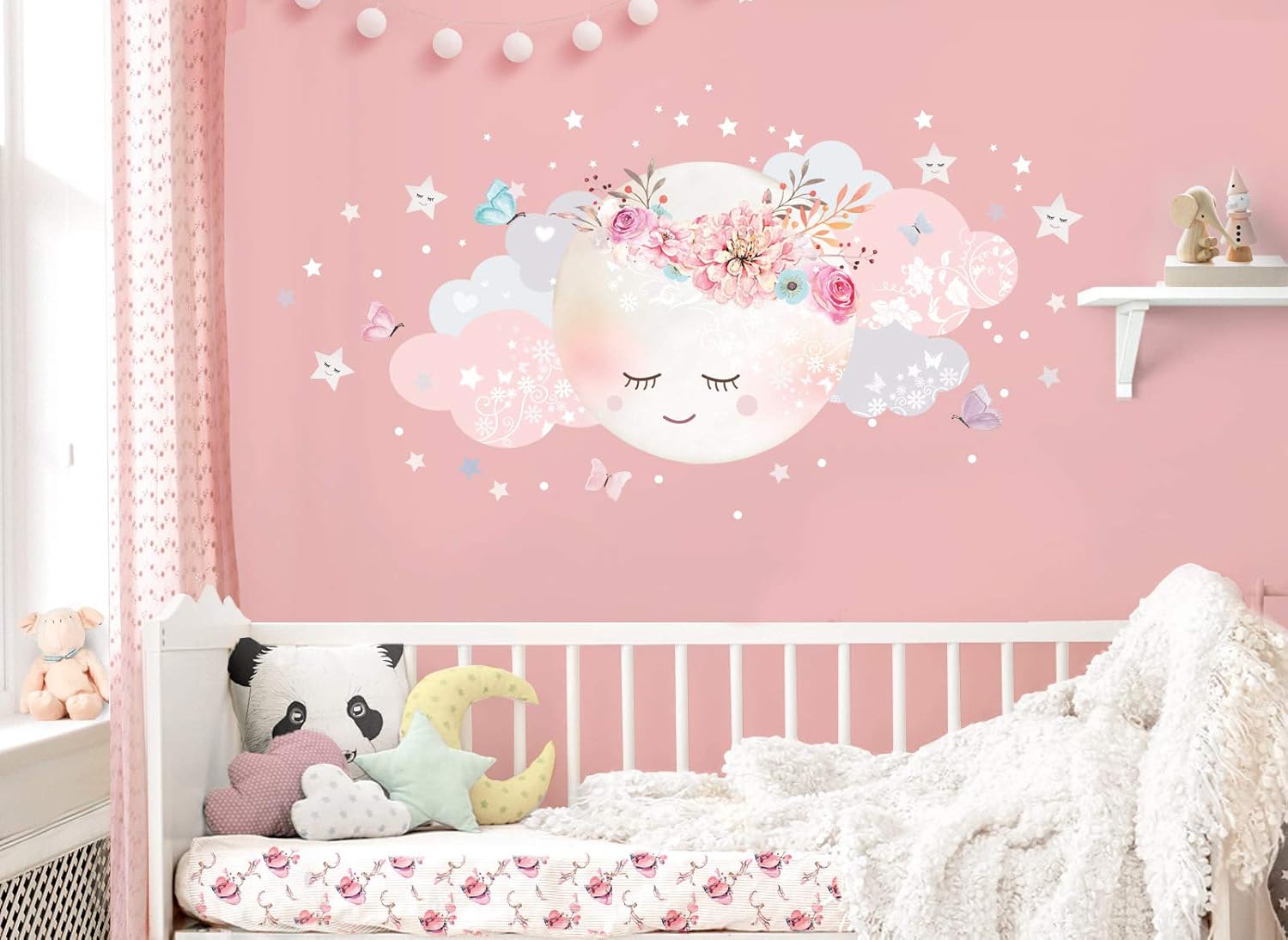 Little Deco Wandsticker Kinderzimmer Madchen Mond Wolken I Xl 127 X 63 Cm Bxh I Wandtattoo Babyzimmer Selbstklebend Wandaufkleber Sterne Blumen Kinder Dl243 Amazon De Kuche Haushalt