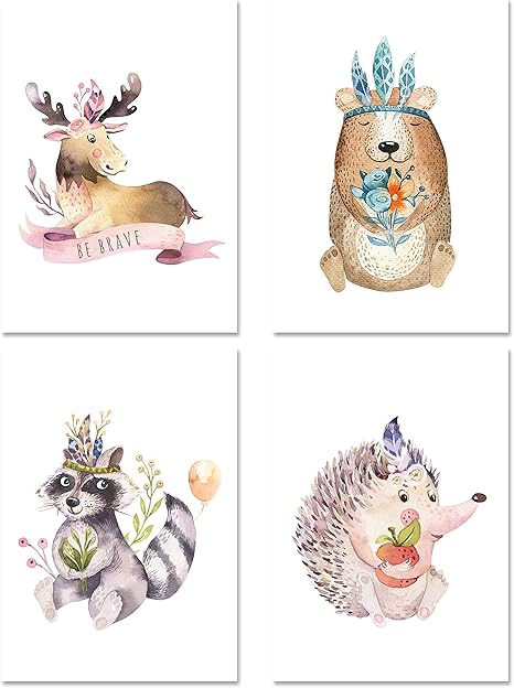 Picsonpaper Kinder Poster 4er Set Boho Tiere Ungerahmt Din A4 Dekoration Furs Kinderzimmer Babyzimmer Kinderposter Babyposter Wasserfarben Wandbild Amazon De Kuche Haushalt