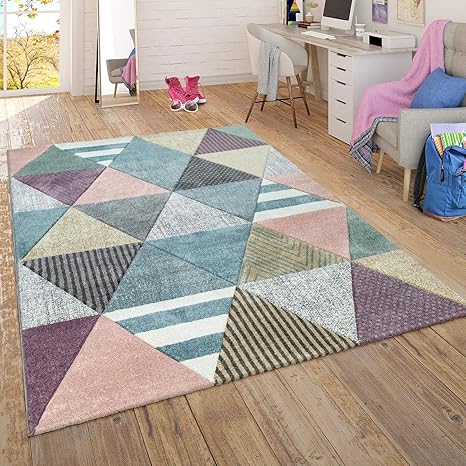 Amazon De Teppich Wohnzimmer Kinderzimmer Jugendzimmer Pastell Moderne Muster In Rosa Turkis Mint