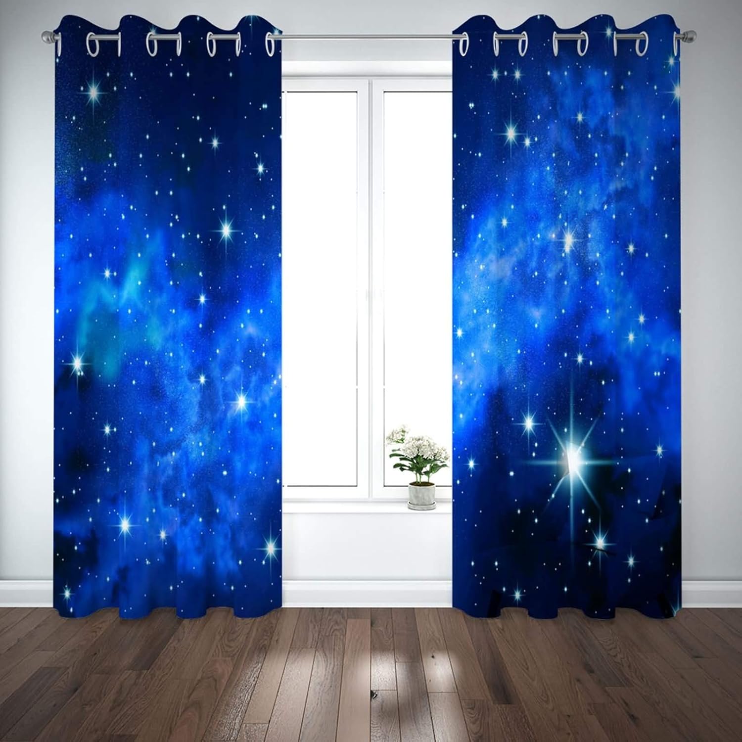 Fenster Vorhang Wohnzimmer Blickdicht Lang Sternenklarer Himmel Gardine Vorhange Verdunklung Kinderzimmer Blau Daesar Vorhang Polyester Mit Osen 2er Set 214x115cm